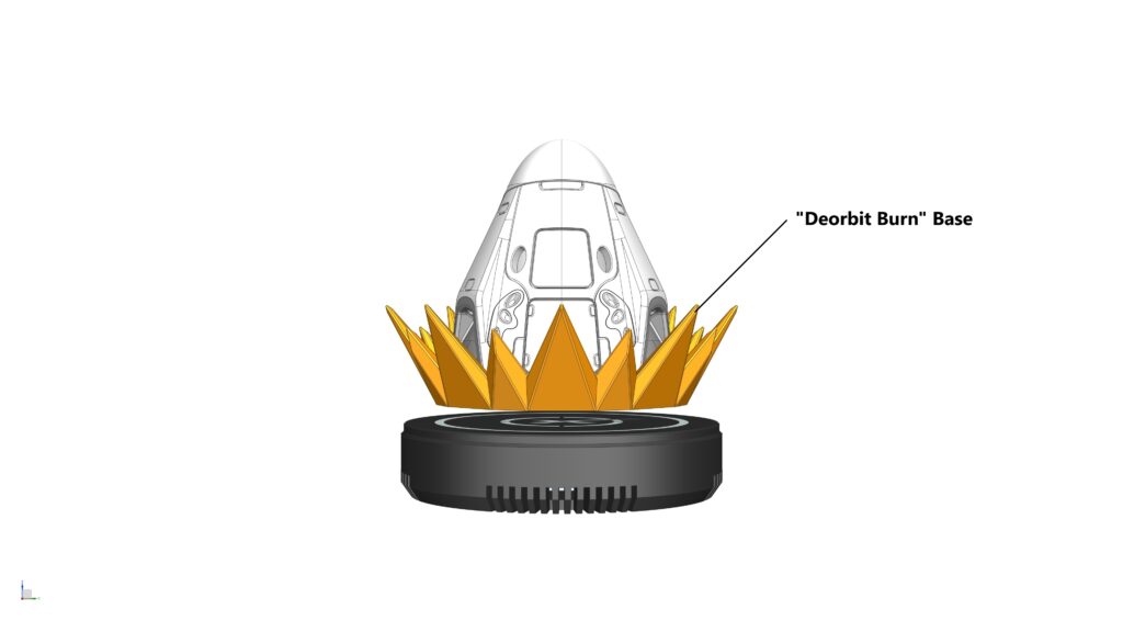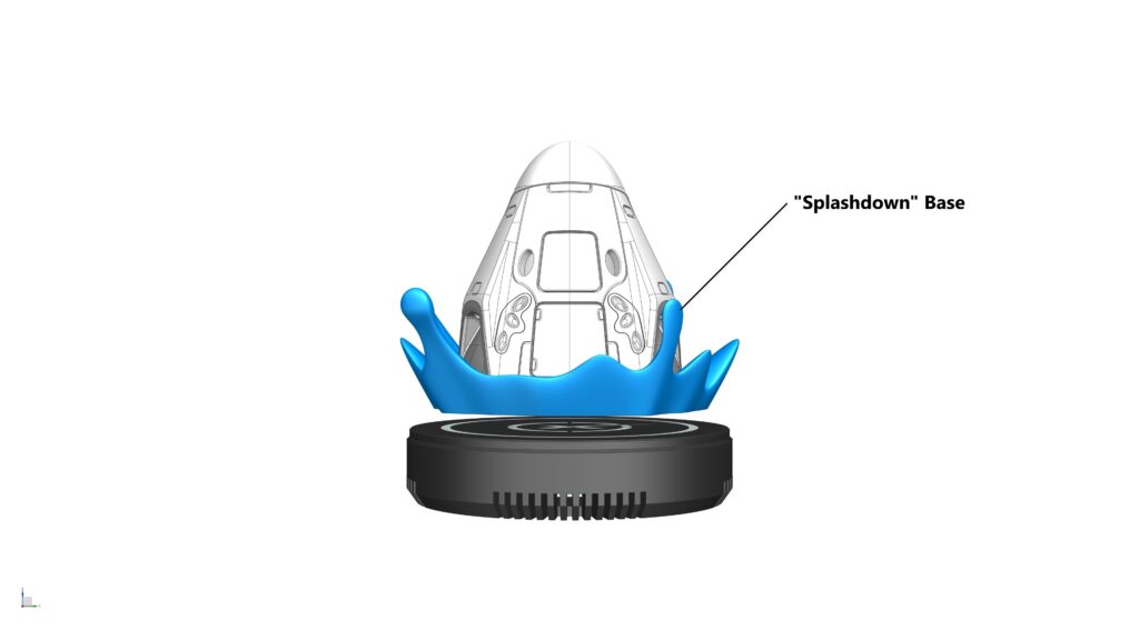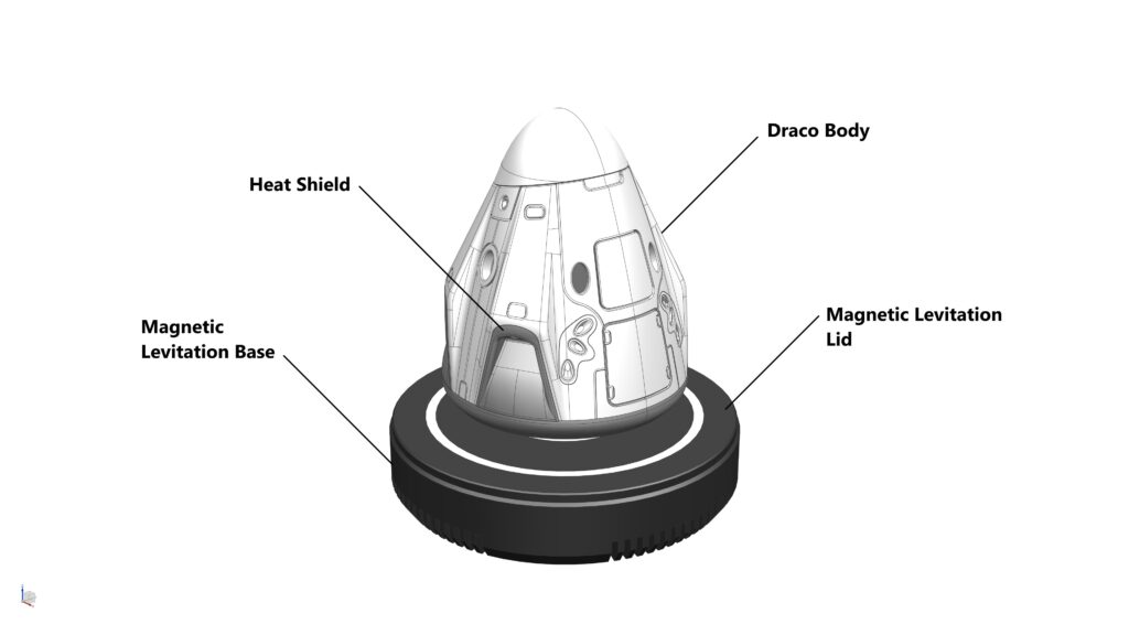 OPTIONAL: The ‘Splashdown‘ and ‘Deorbit Burn‘ Stands are optional and can be downloaded FREE of charge via our Morethan3D Discord Server under #free-giveaway channel. To use these Stands, simple press-fit them into the Heat Shield of the DRACO model (no glue is required), and levitate the whole thing on the Magnetic Levitation Base.